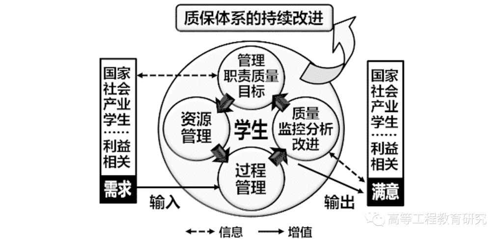高校内部质量保障标准构建的理论基础是全面质量管理(Total Quality Management,TQM)。1961年美国通用电气公司总裁费根堡姆(Feigenbaum)首先提出全面质量管理概念,戴明(Deming)为代表的学者在日本推广使用并取得巨大成功,后来得到国际标准化组织ISO的关注,被1987年颁布的ISO9000系列标准全面采纳。格林伍德(Greenwood)等认为,全面质量管理同样适用于教育领域的质量保障。