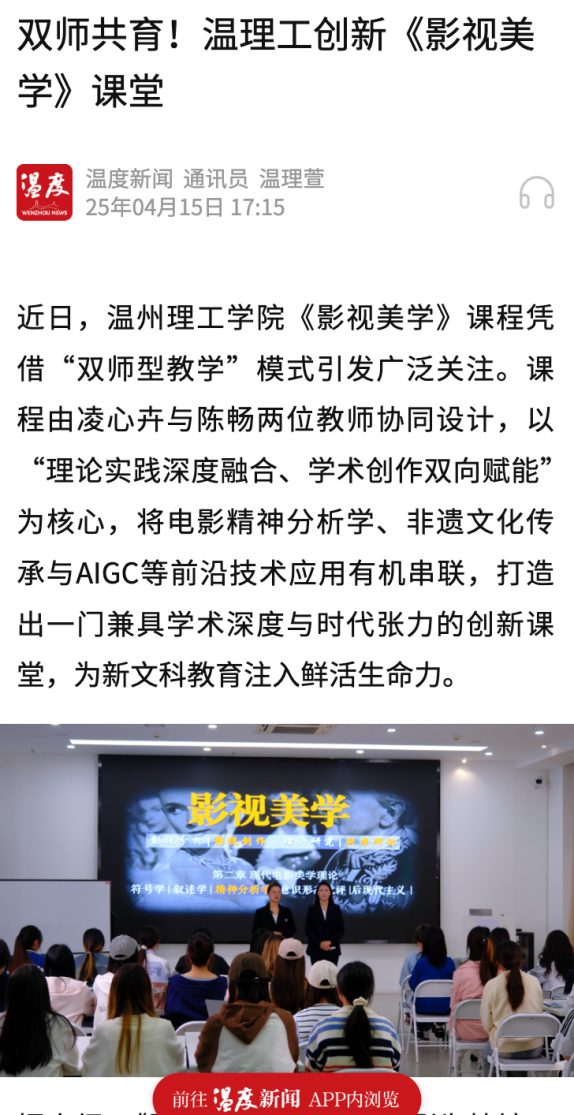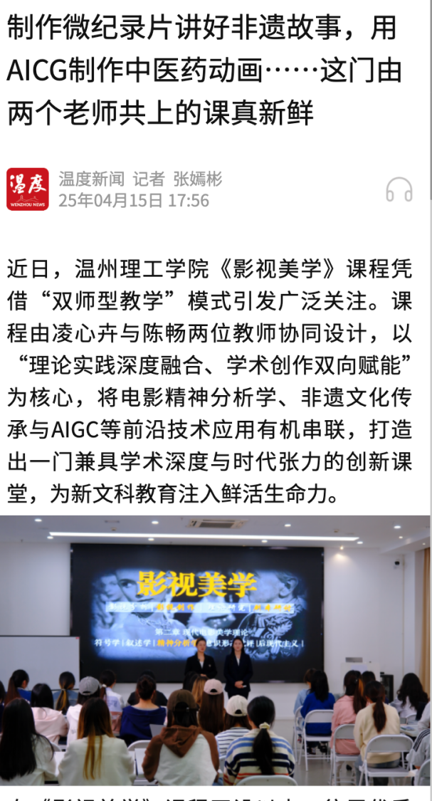 温州新闻网:山海课堂|以“协同·赋能·铸魂”构建新时代影视教育新生态