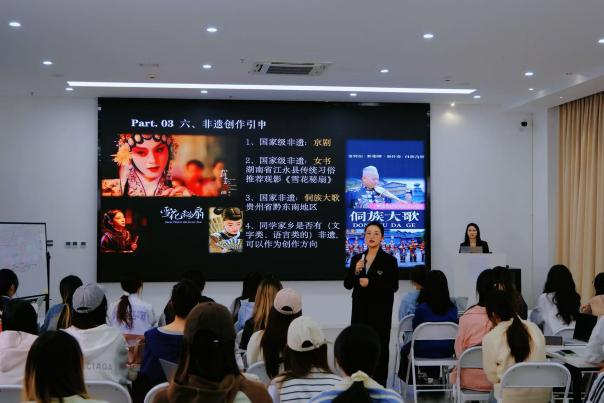 凌心卉老师以经典电影理论与精神分析视角切入,通过代表性影片片段解析镜头语言与情感叙事的深层关联,并融入中国非物质文化遗产元素,引导学生在实践操作中感悟影视美学的文化内涵与思政价值;